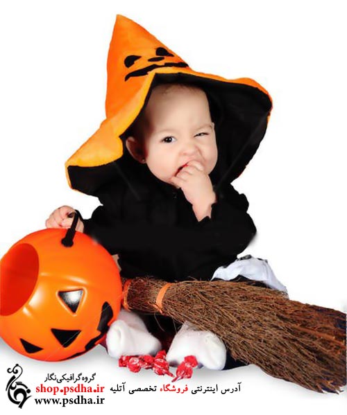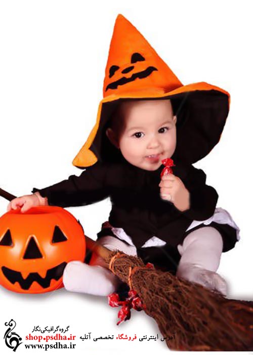 ژست عکس کودک در آتلیه با لباس جشن هالوین
