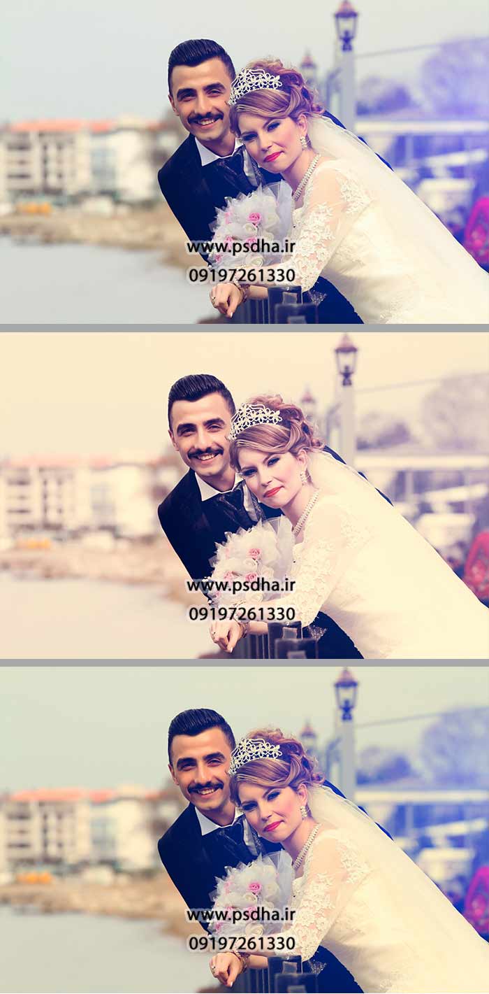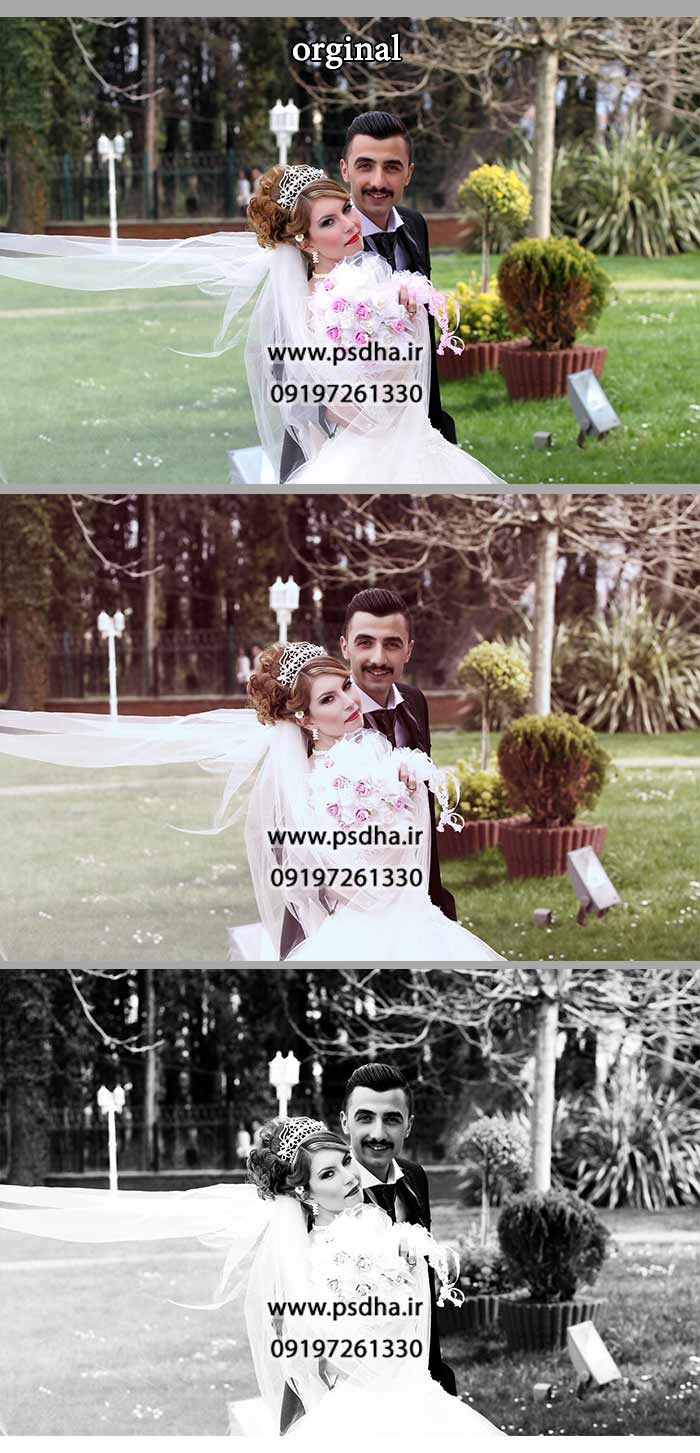 اکشن فتوشاپ آتلیه ای برای عکس عروس و داماد بصورت سافت افکت، شارپ و سیاه و سفید