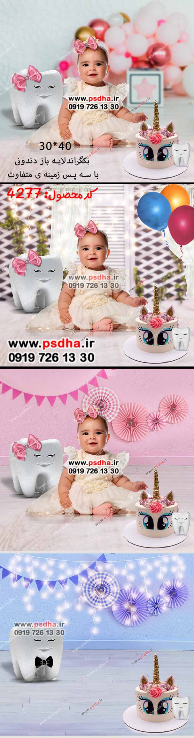 بک گراند دندونی با تم دخترانه و پاپیونی و همچنین با تم رنگ آبی برای طراح عکس پسرانه با پاپیون مشکی ، شامل لایه های بادکنک ، دکور دندان ، دکور کیک تک شاخ یونیکورن ، ریسه ی چراغ و …